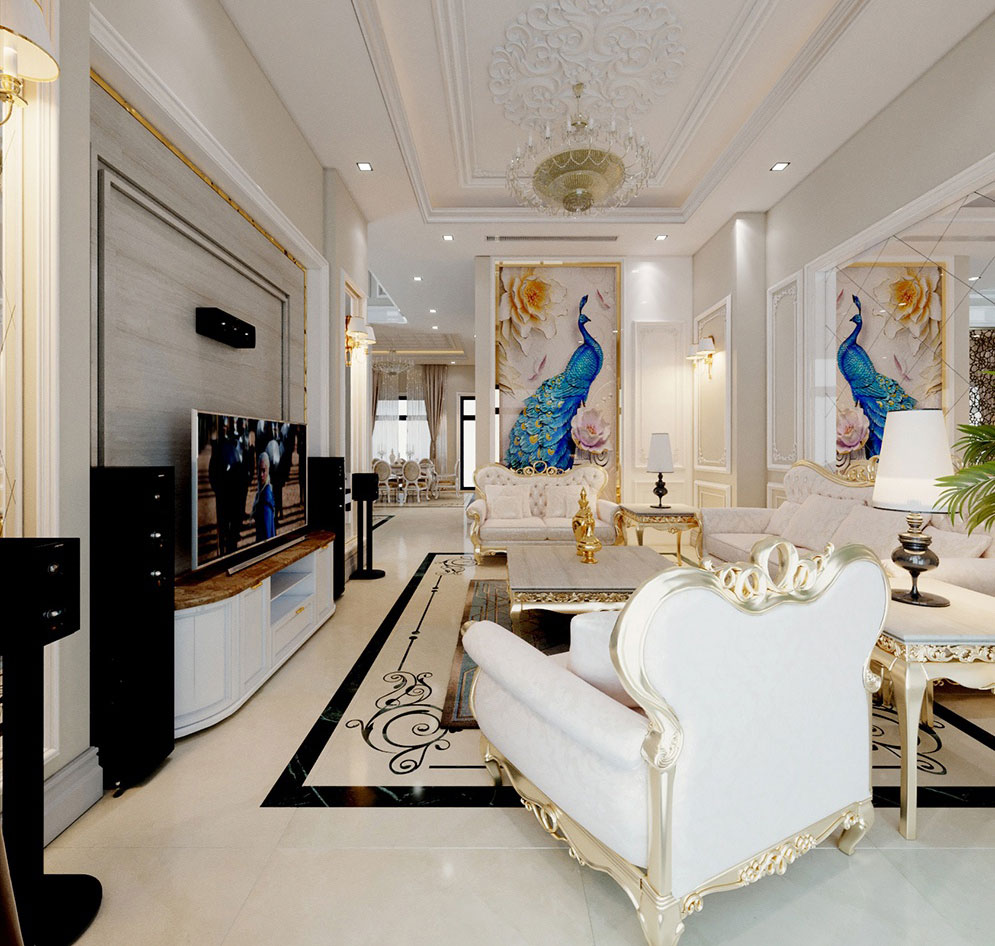 Ngay khi bước chân vào phòng khách bạn sẽ bị choáng ngợp bởi sự xa hoa, lộng lẫy của không gian.