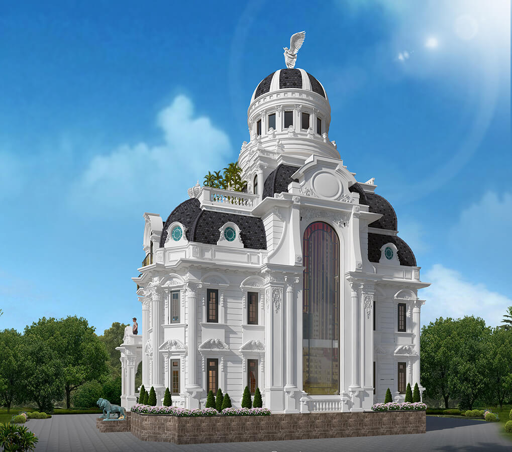 Hình ảnh phối cảnh dinh thự pháp 3 tầng có tầng hầm