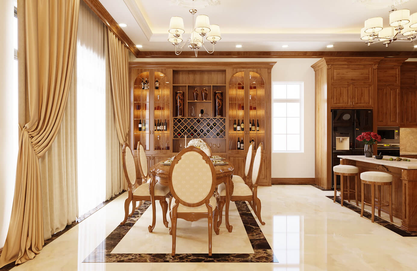 Bố trí nội thất biệt thự cổ điển có tầng hầm
