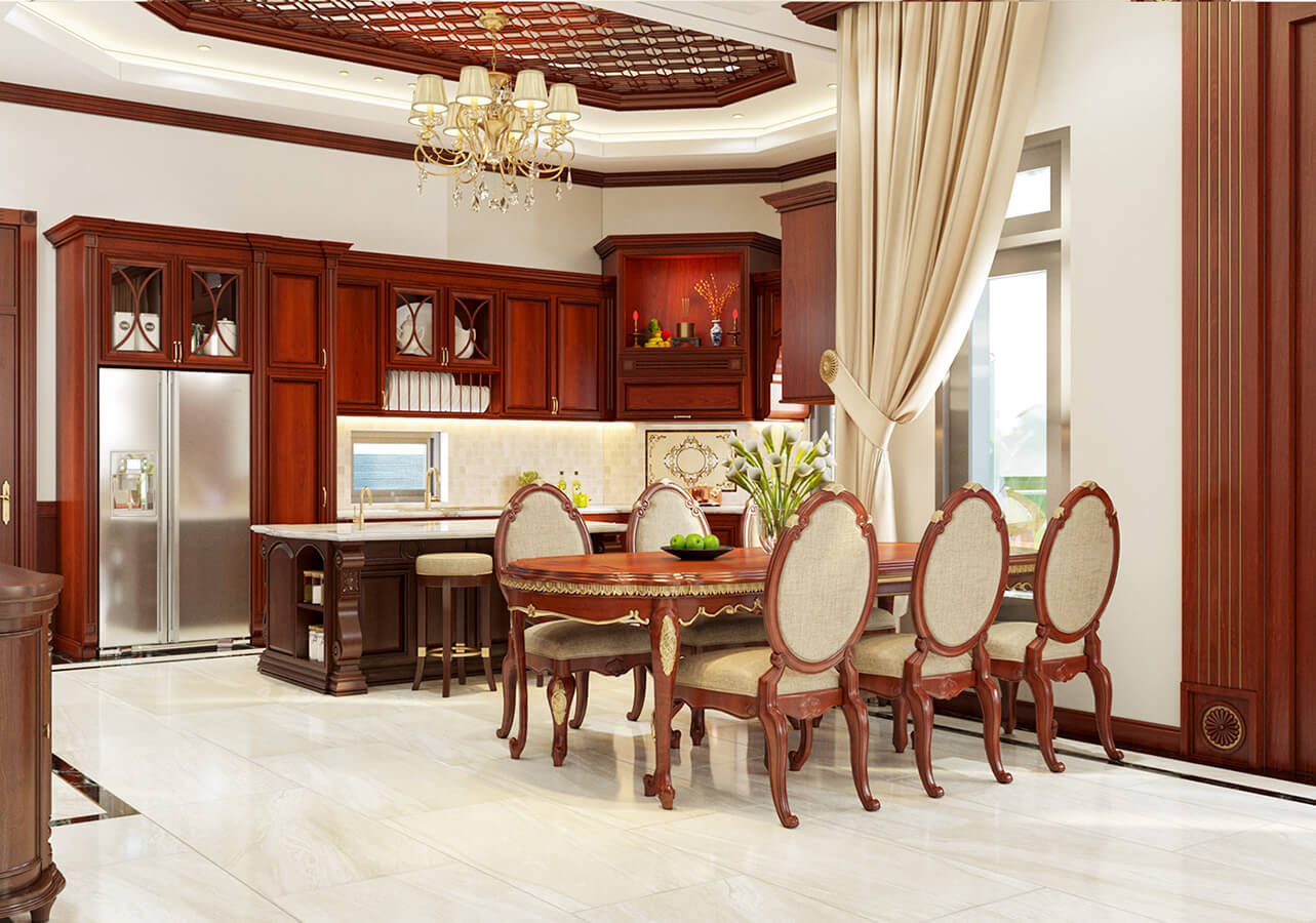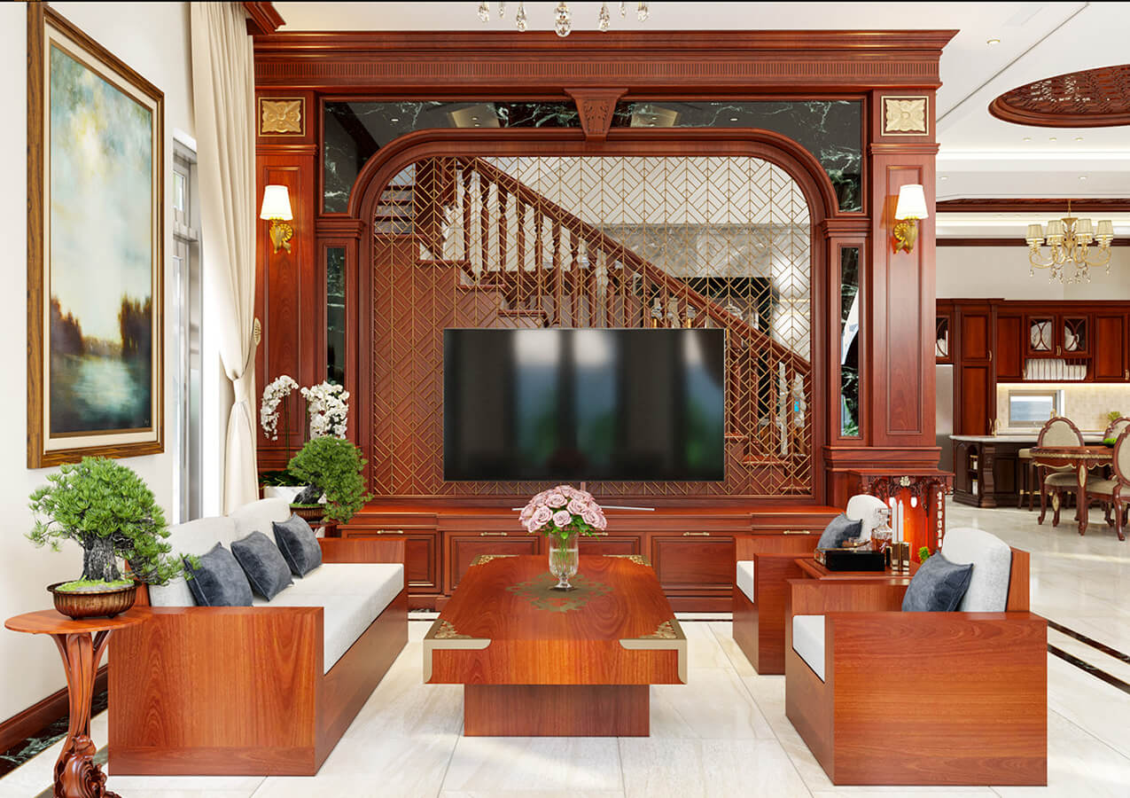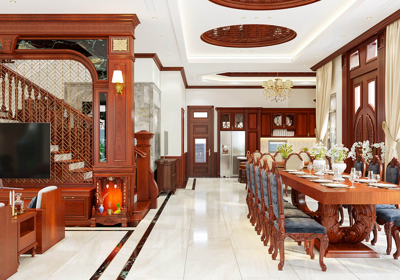 Bố trí nội thất biệt thự cổ điển 3 tầng tại Bình Dương