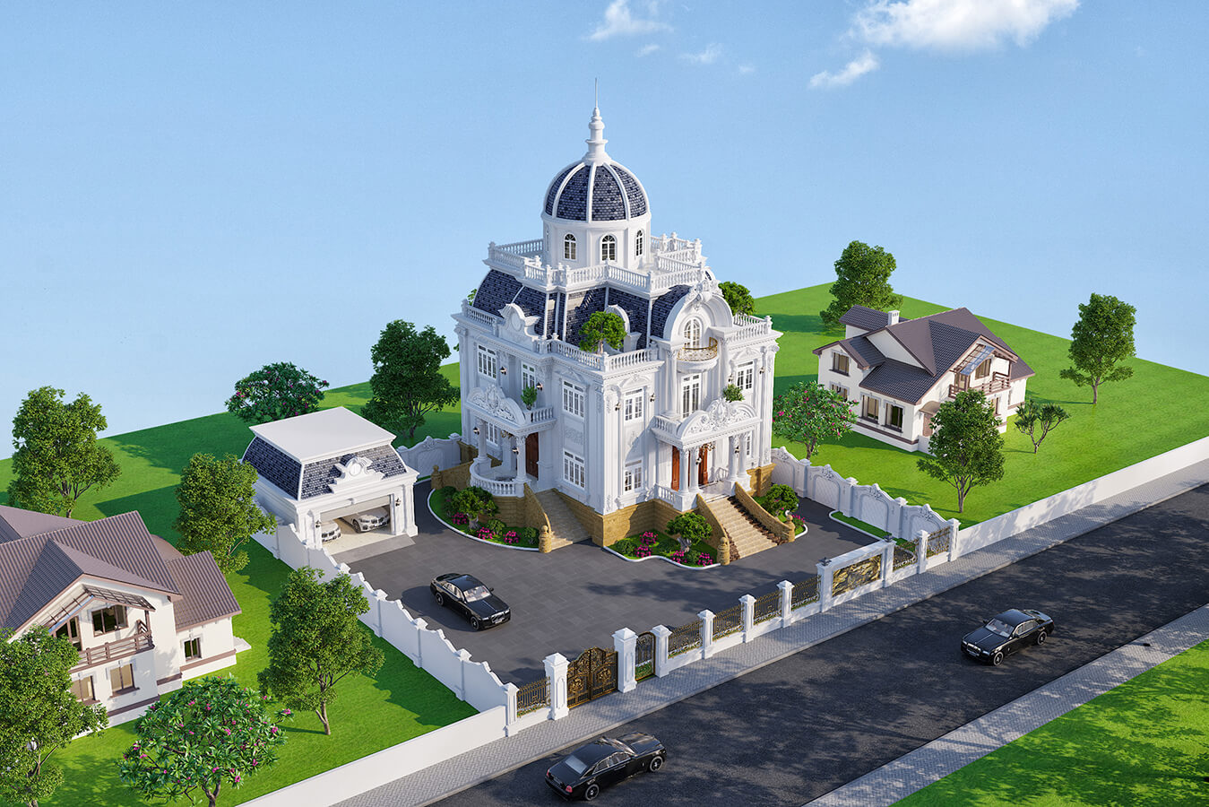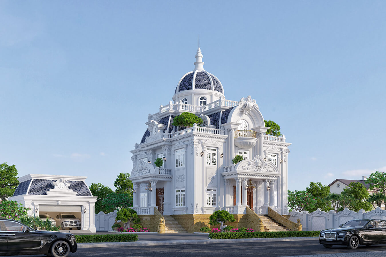 Dự án biệt thự cổ điển 3 tầng được thiết kế tỉ mỉ và cộng với việc tuân theo những quy luật nghiêm ngặt của các công trình kiến trúc tân cổ điển mang đến vẻ ngoài lộng lẫy, xa hoa xứng tầm đẳng cấp cho vị chủ nhà có điều kiện kinh tế và địa vị trong xã hội.